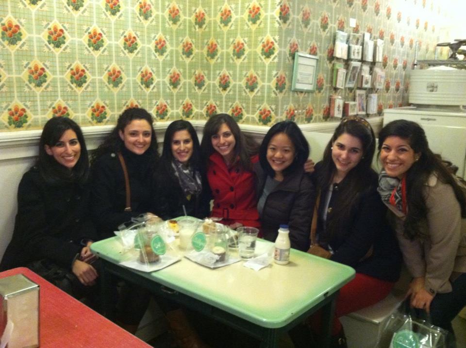 My friend Kristin who has been out of the country for 18 months returned to the States this weekend. Before going home to Florida, she made a stop in New York City where she was greeted with big hugs, kisses, and a rousing homecoming from close-knit friends. We ate cupcakes, shopped, and hair-flipped our way through New York City like an obnoxious group of sorority sisters. It was almost like college again 🙂