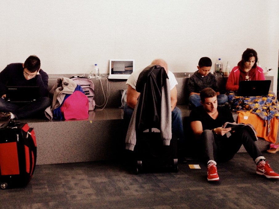 I’ve created my own office in the flight attendant waiting area at JFK. I accompanied my friend who was flying out a couple hours before me, so I’m 4 hours early for my flight. I figured the down time and lack of Internet access would force me to focus, write, and plan. I went to the bathroom and Starbucks for 10 minutes and this is what I returned to: